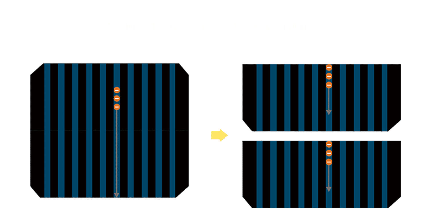 - 结合半切电池,,降低遮阴影响、、提升模组抗隐裂能力、、并减少电阻损耗,,,进一步提升模组发电效能。。。。
